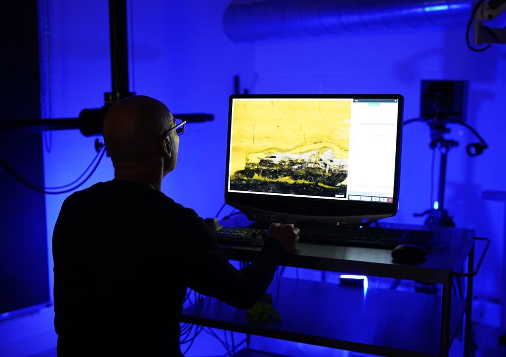 In-depth examination, scientific study, assessment of condition and predicting the impact of time and change on these four Mondrian paintings is achieved through technology-based methods such as X-radiography, infrared reflectography, material analyses and high magnification.