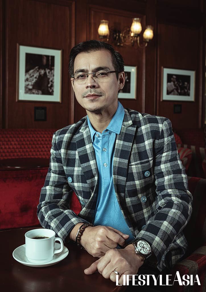 There are moments where you just have to pause and be at awe when an unlikely pair meets and chemistry builds instantly. This is what we witnessed with the convergence of our cover personalities at their photoshoot, with the regal and dapper Tap Room of the Manila Hotel as the backdrop of the unexpected, but nonetheless monumental meeting. The bar’s wooden walls accented by bright red furniture make for an adequate setting that reflects the contrasting yet harmonic interactions of these two personas. Tessa Valdes with her signature lively and uplifting energy represented in the regal red, while Mayor Moreno’s laidback demeanor harking to the wooden decor.