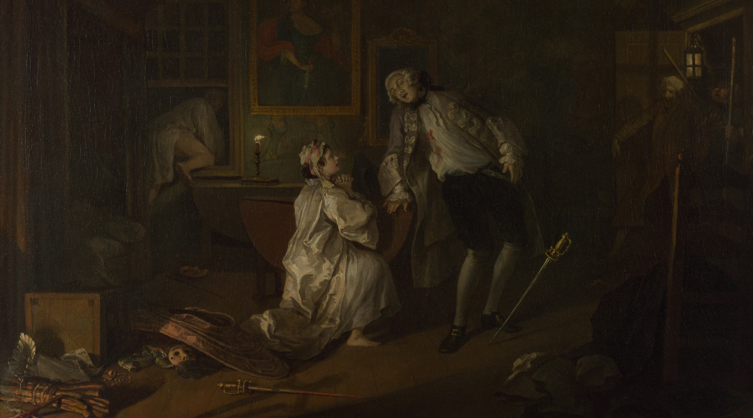 The Bagnio – Fifth painting of the series Marriage A-la-Mode painted by William Hogarth
