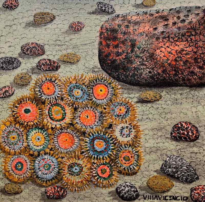 Hawaii-based artist Juno Galang takes us to the depths of tropical seas with his dazzling Fish Series in vibrant hues of purple, green, yellow, red and blue that characterize his true nature. Fashion designer-turned-visual artist Boysie Villavicencio’s coral paintings, on the other hand, reveal his attention to detail and eye for the exquisite.
