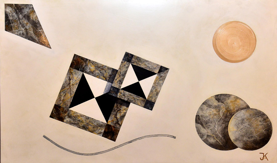 An aeronautical engineer, sculptor Arnel Borja demonstrates his ideas on balance in new works that make use of fulcrums to achieve the necessary weights and counterweights of the concept. Swedish artist-musician Janet Kamphuis, who believes that “Art is Oxygen,” breathes creative life into her mixed media and wood canvases.