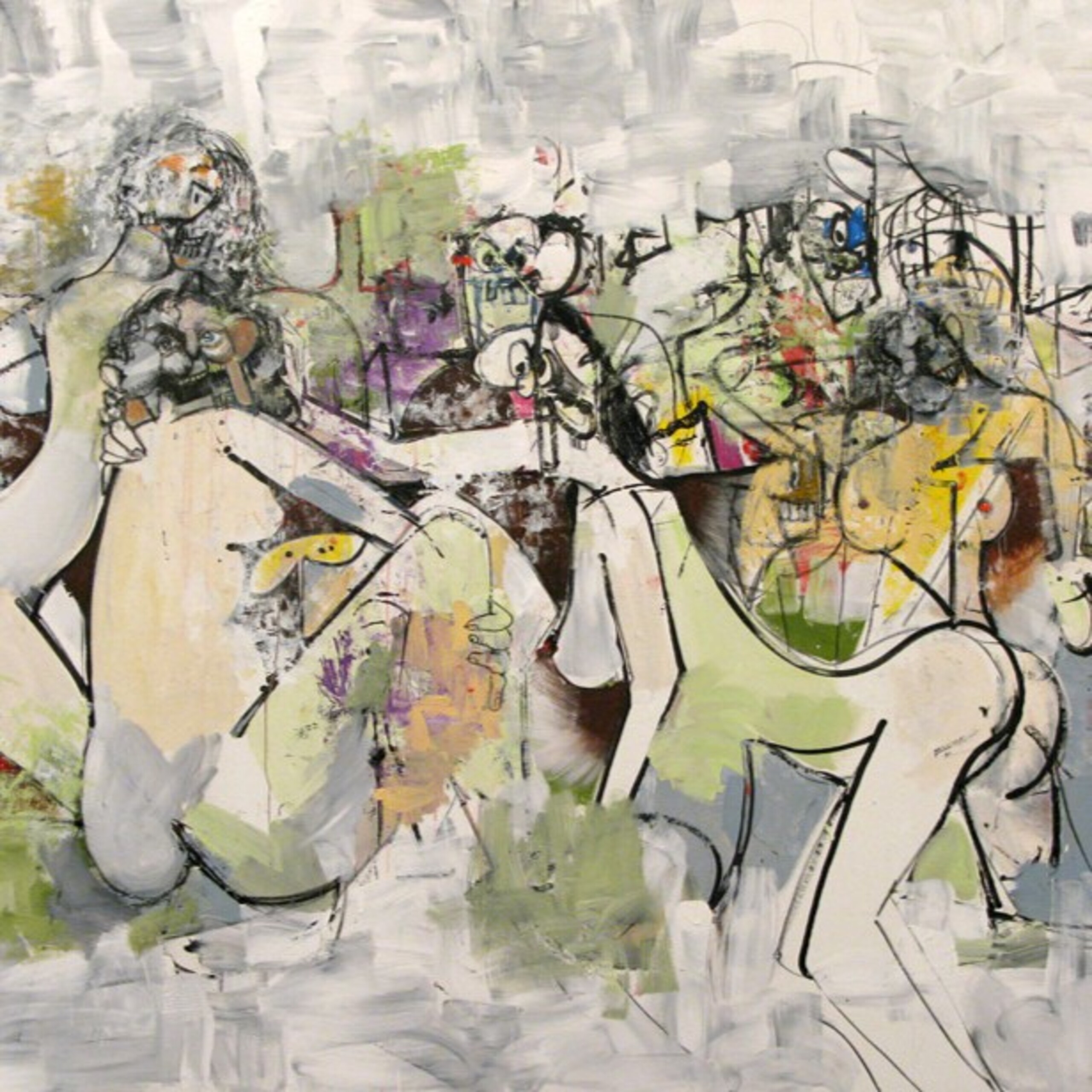 American artist George Condo’s “Figures in a Garden” sold for $5.5 million. The acrylic on linen piece depicts a cacophony of figures with distorted faces that comprise Condo’s recognizable style. Unusual, grotesque, and surreal physical features characterize the artist’s portraits. His abstractions take inspiration from masters like Picasso and Diego Velázquez.