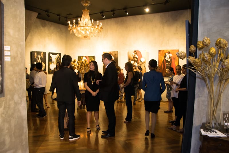 The opening night of MYSTIQUE in The Provenance Gallery was filled with energy as art patrons and friends of owners Derek Flores, Joanna and Raul Francisco arrived for the exhibition of young artists from Bulacan. Welbart, Abi Dionisio, Yao Sampana, Brian Bernardo, and Jayson Cortez collectively known as Art Zoo showcased their unique and distinctive styles in conveying their messages about love, healing, dreaming, friendship and discovery. The gallery located at Shangri-La at the Fort was a happening place with guests viewing the collection with champagne glasses in hand and lively music by DJ Kokoy Puyat.