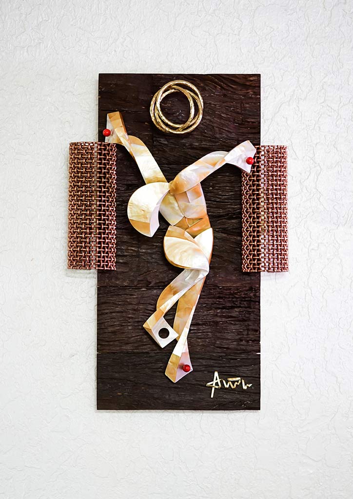 In Hulma, del Rosario’s sculptures play on the themes of love and compassion. The 14 pieces, in mixed media such as metal, copper, brass, resin, and mother-of-pearl come to life in dynamic forms that symbolize mother-and-child affection, a nude sculpture that represents self-love and confidence, entwined lovers, and Christ on the Cross, one of her favorite motifs.