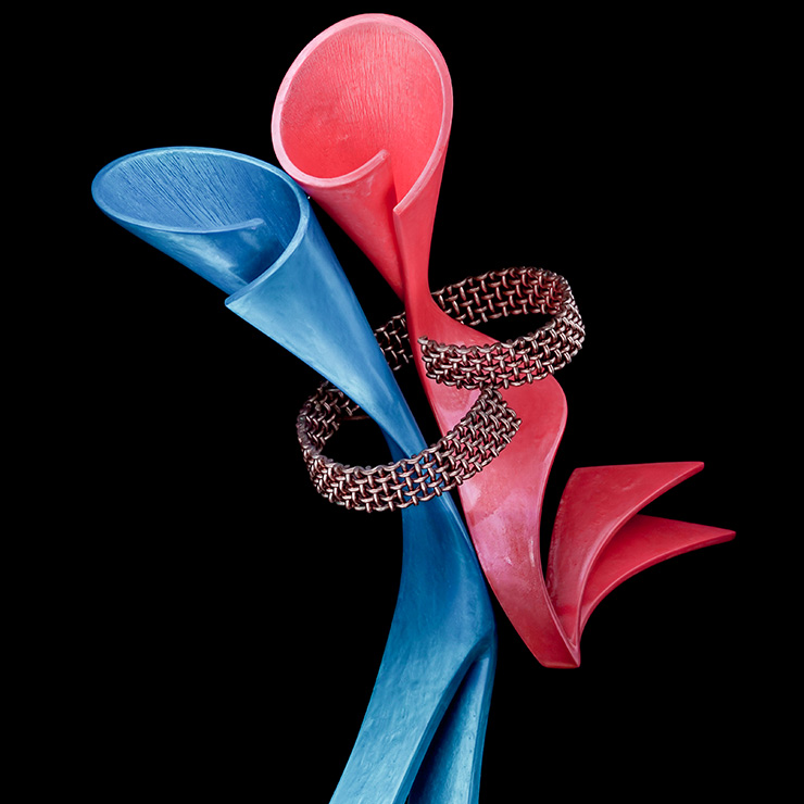 Soon after, a chance encounter with a Fine Arts friend led her to work with the country’s top jewelers before venturing out on her own as a high-demand jewelry designer for 50 years. Her mastery of material and a fondness for experimentation are also applied to her sculptures.