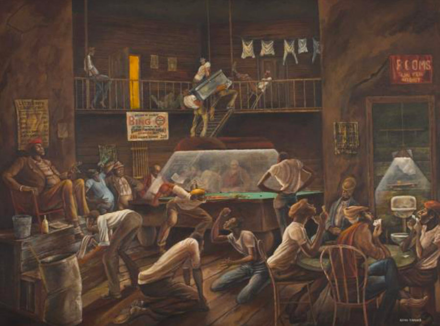 A widely loved and popular painter during his time, Barnes was a professional American football player before becoming an artist. It was this past as a football player that informed his mastery over the human anatomy, reconciling his roles as an athlete and artist.