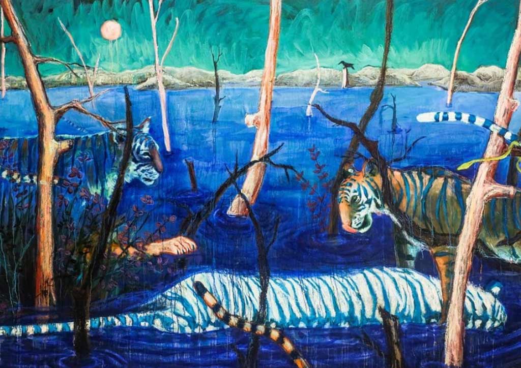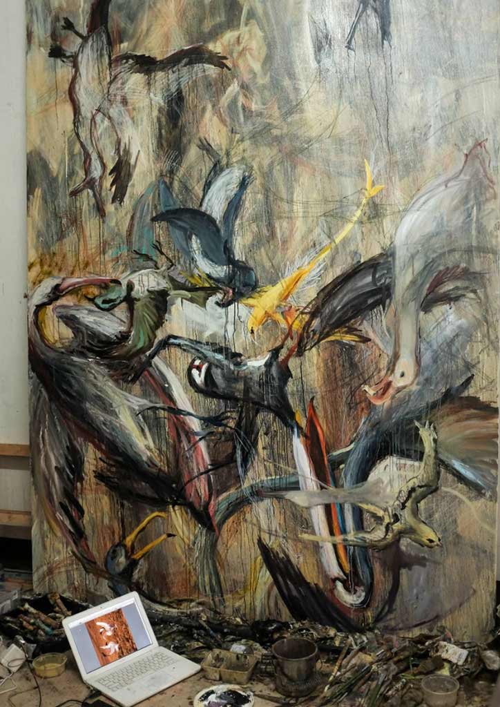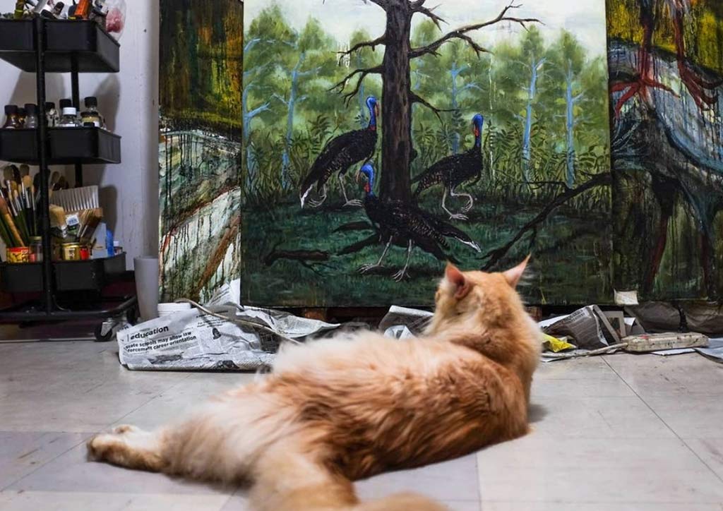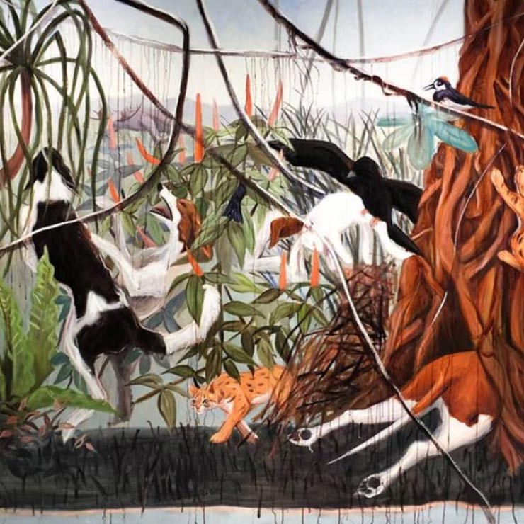 In her website, Jonson says her paintings are visual commentaries on the “divide that has grown between [nature and mankind]”—”a divide that displaces them as Other, different from humans, and lower in importance and hierarchy.”