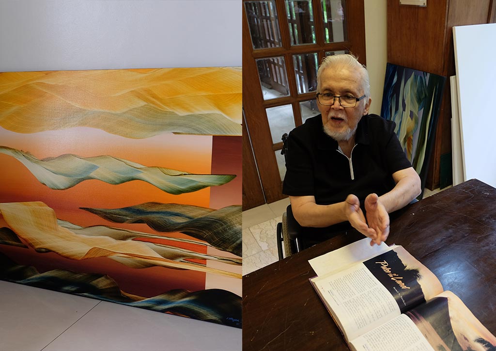 “When it reached ‘Mindscape 25,’ it was hard na. So now I put subtitles, like ‘Search Mindscape Solitude,’ which was about a trip to Banaue,” he explains. “Search Mindscape Nostalgia,” meanwhile, is from the same time and is the first painting he made for Salcedo Private View.