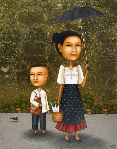 An extremely talented artist considered by many as the modern-day Damian Domingo, Dominic Rubio is known for his signature caricatures, which showcase Filipino sensibilities—local archetypes that are relatable and familiar. Characters with elongated necks and enlarged heads have since populated his rich portfolio and have made his pieces collectible.