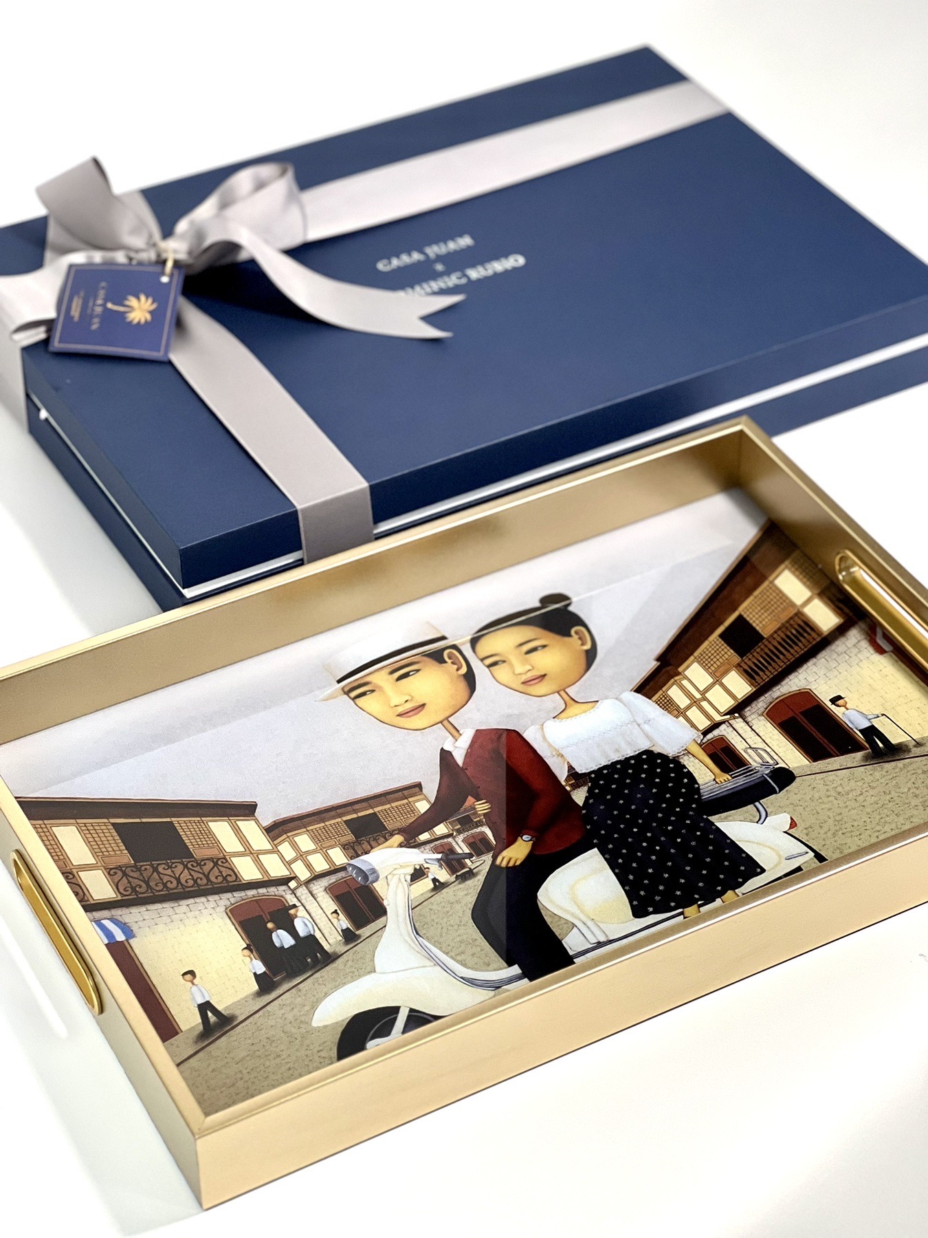 Michelle, who has been gradually integrating creative collaborations into Casa Juan’s product range adds “I have long admired and collected the works of Dominic Rubio. They strike me as a modern version of Tipos del Pais (types of country). More than that, I am an avid supporter of Philippine art. So I sought out ways to collaborate with more artists to bring a piece of the Philippines and Filipino artistry into more homes.” Featured in this special collection of objets d’arts )art objects) are prints from Rubio’s Paseo en Moto (currently on exhibit at Galerie Joaquin in Madrid) and Sol Dorado. With pieces from this special partnership, Casa Juan and Rubio impart the value in celebrating our culture, identity as a people, and our distinct way of life.