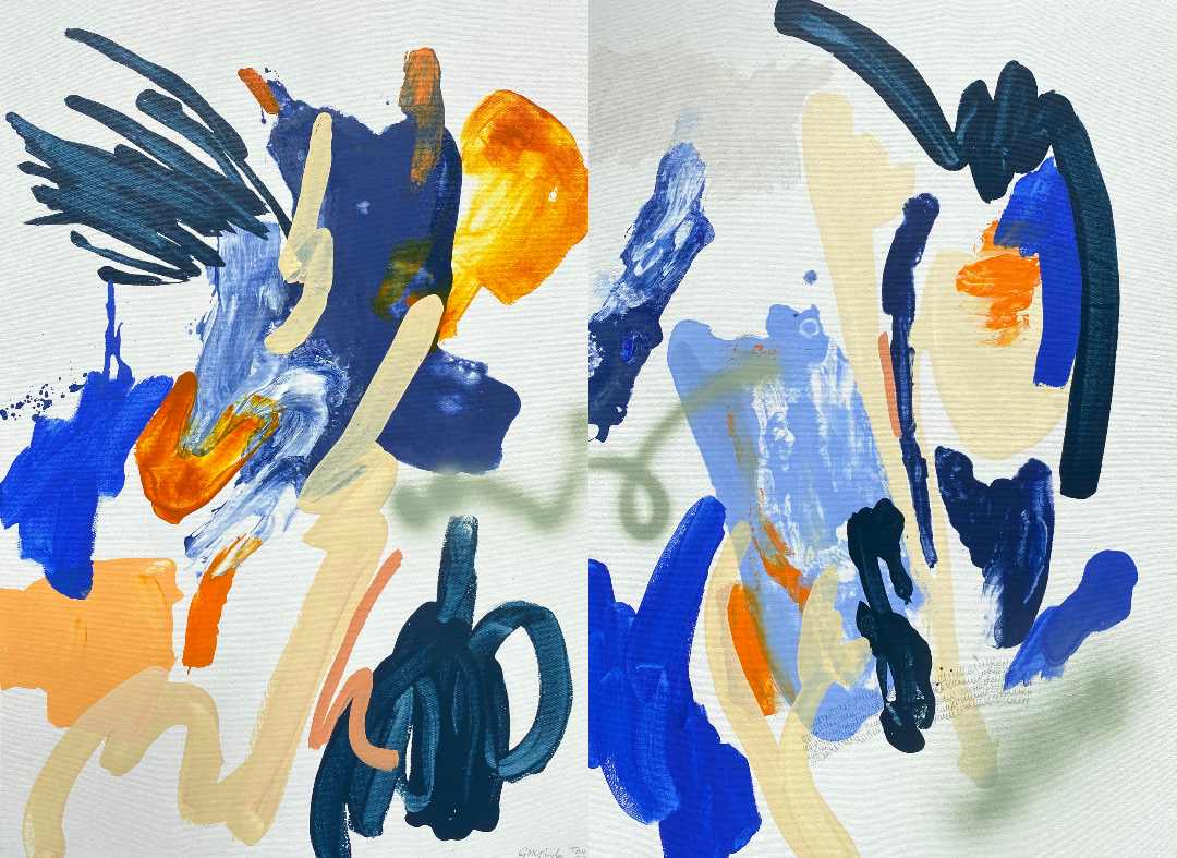A glance at her paintings demonstrates how certain sounds and music move her. In turn, she translates these into impulsive and spontaneous movement of colors—the way it triggers her vision to see them.