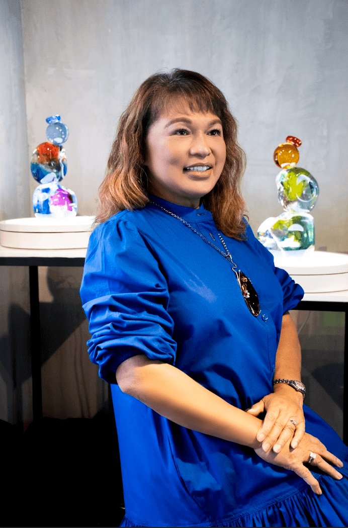 The glass artist started her art career at the age of 56. Her dedication to creating and designing started as a hobby to pass the time. “When I was younger, I designed clothes or houses. Eventually, I designed condominiums, and after finishing designing one, I would buy another just to decorate it again. I thought it’s time to study art, to formalize my passion,” she said.