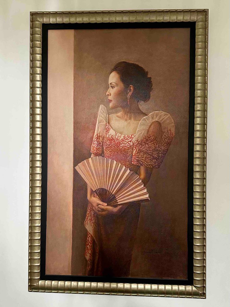 This portrait by Rafael del Casal was the result of an unforgettable group effort with friends: Gino Gonzales designed the terno [a traditional Philippine dress], Gigi Gonzales-Uson did the hair and makeup, and Ian Santos took the photographs. I was an uncooperative and self-conscious subject, so I contributed the least. It truly took a village to produce this beautiful artwork.