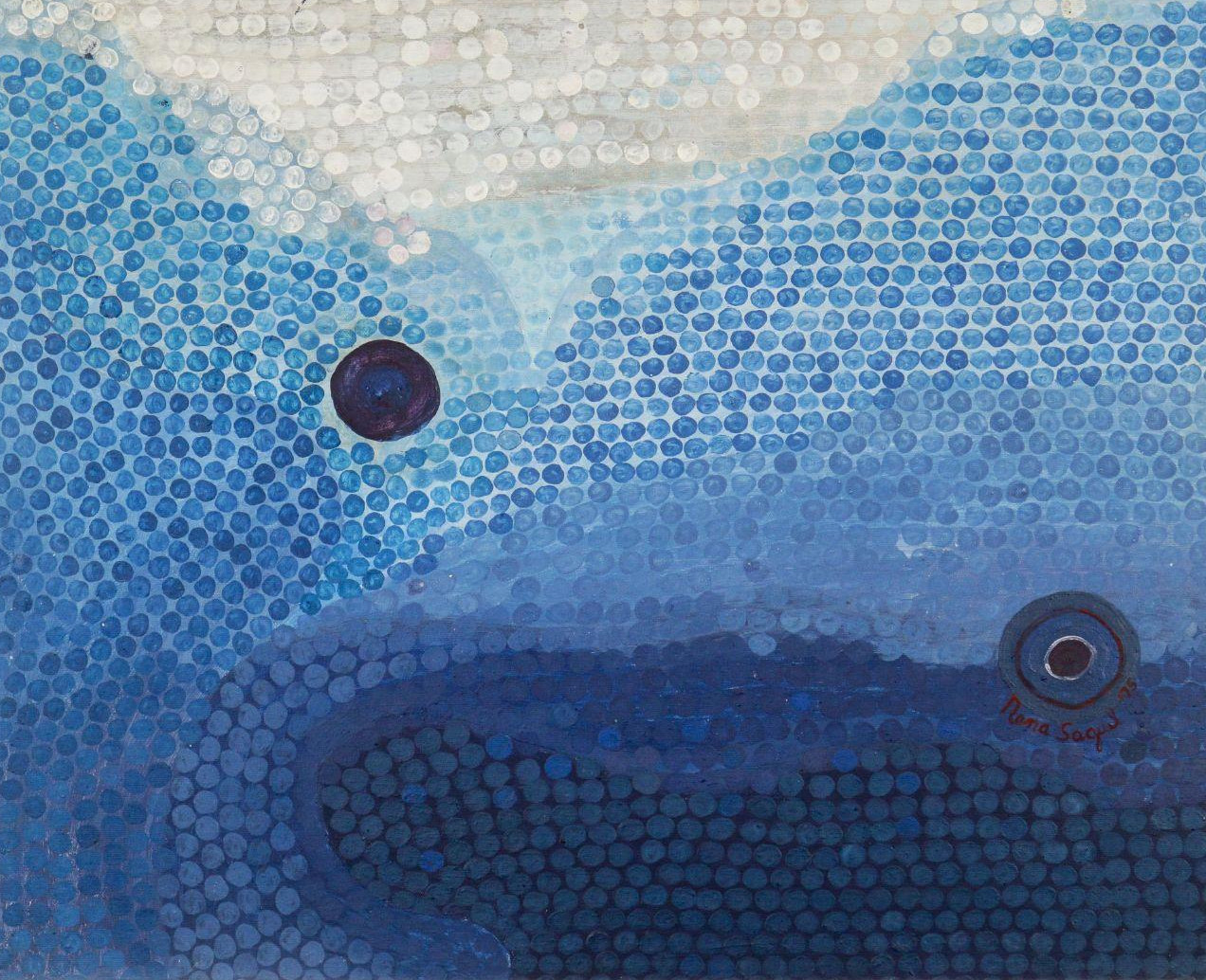 A graduate of the University of Philippines School of Fine Arts (and recipient of its Award of Excellence), Nena Saguil established herself as an inimitable voice in Philippine abstract art, being one of its earliest and most influential practitioners. Five years after graduating university, she left the country to pursue further studies in Paris—where she received multiple grants—and continued her creative practice there for forty years. In 1974, Saguil was inducted into the roster of 12 Outstanding Overseas Filipinos, and in 2006, she was posthumously awarded a Presidential Medal of Merit for her outstanding contributions to the field of art.