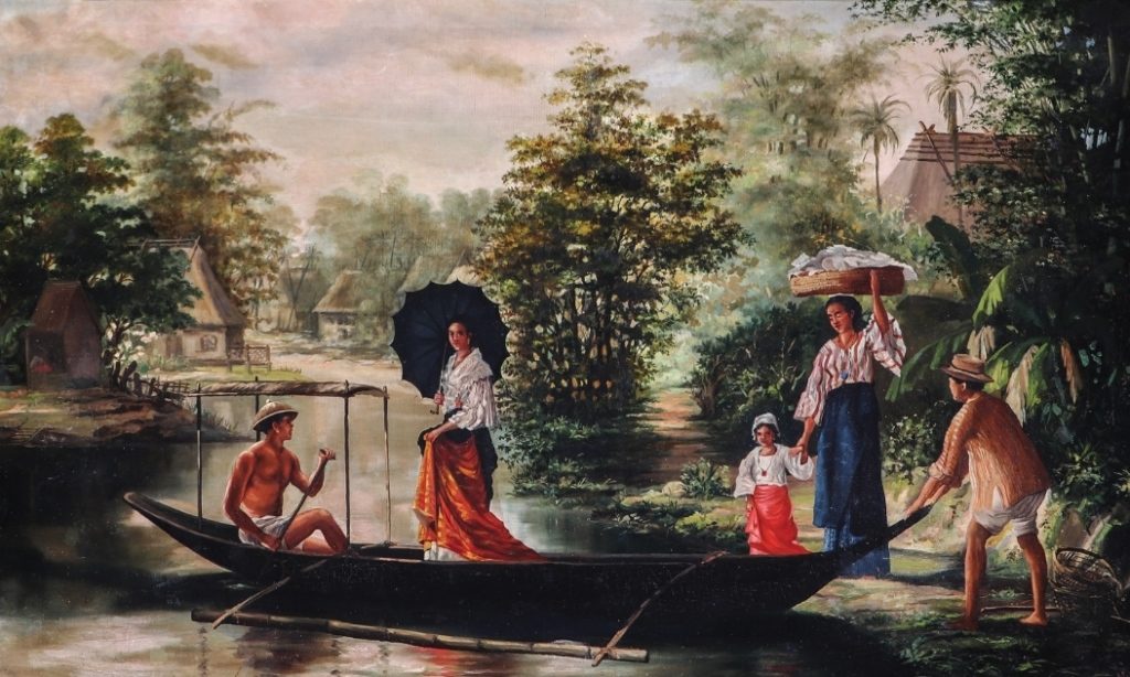 “Homage to A Lady” (24”x36”, oil on canvas, signed and dated 1967 lower right and verso) by National Artist H R Ocampo (1911-1978).