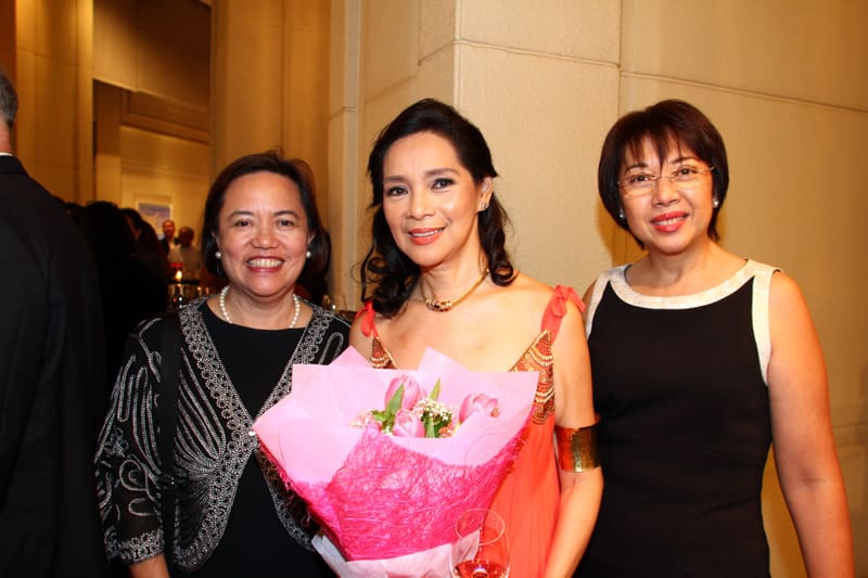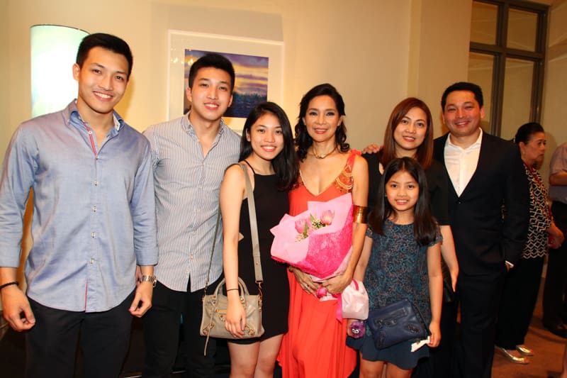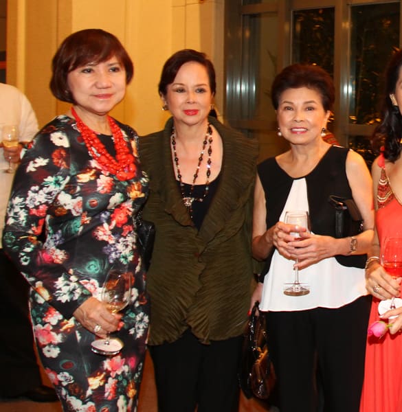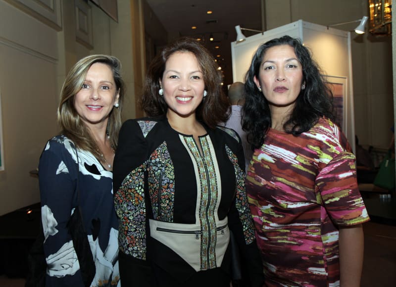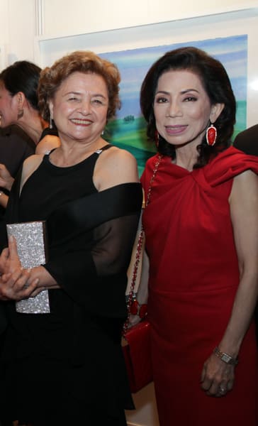 The Gallery of The Peninsula Manila was filled to the brim with art aficionados who came to view a panorama of artworks reflecting a contemplative odyssey, a discovery of insights through cathartic experience, and evolvement of the soul by Marivic Rufino. The exhibit of peaceful meditative, dreamy paintings of nature and light-evoked deja vu images of the future and past memories is entitled Luminescence, her 18th Solo Exhibit in which she experimented with mixed media on glass and canvas to include new elements in her 35 piece collection. Mav worked on some unfinished works that she started in the late 80’s and mid 90’s, which she finally completed in time for her show. What made the occasion more special was the collaboration of Mav with National Artist Virgilio S. Almario whose poems were translated by poet Marne Kilates to complement the artworks. Proceeds of the exhibit will benefit the Child Protection Network Foundation a cause very dear to Mav.