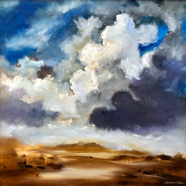 Fifteen paintings and a mix of abstract expressionist works and cloudscapes in style, comprise “A Decade of Kenneth Montegrande.” All 15 works exude an intensity that is typical of Montegrande’s works, an intensity triggered by stark contrasts and bold impastos.