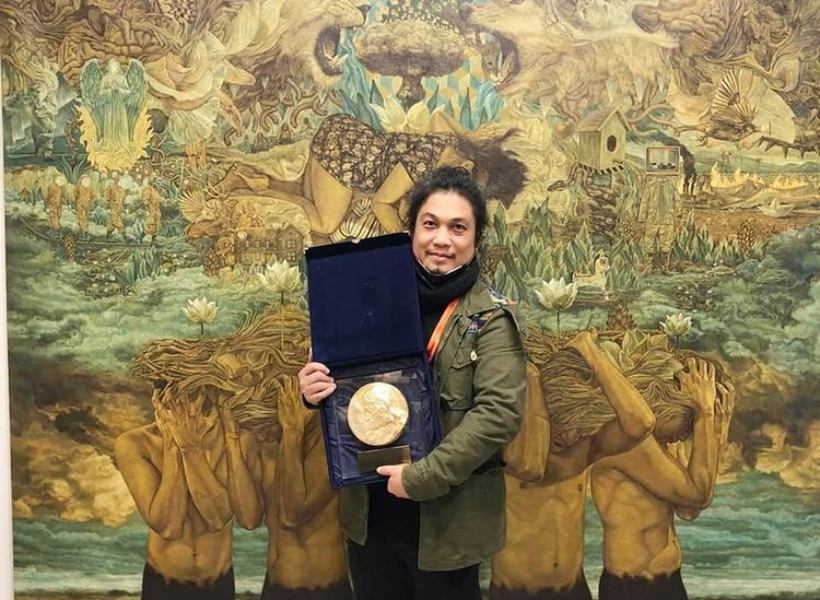Filipino visual artist Michael Garcia Villagante won a “Lorenzo il Magnifico” International Award, the grand prize at Italy’s XIII Florence Biennale 2021. The former graphic designer beat 400 other artists from 65 countries with his “Ang Pagtahan” painting.