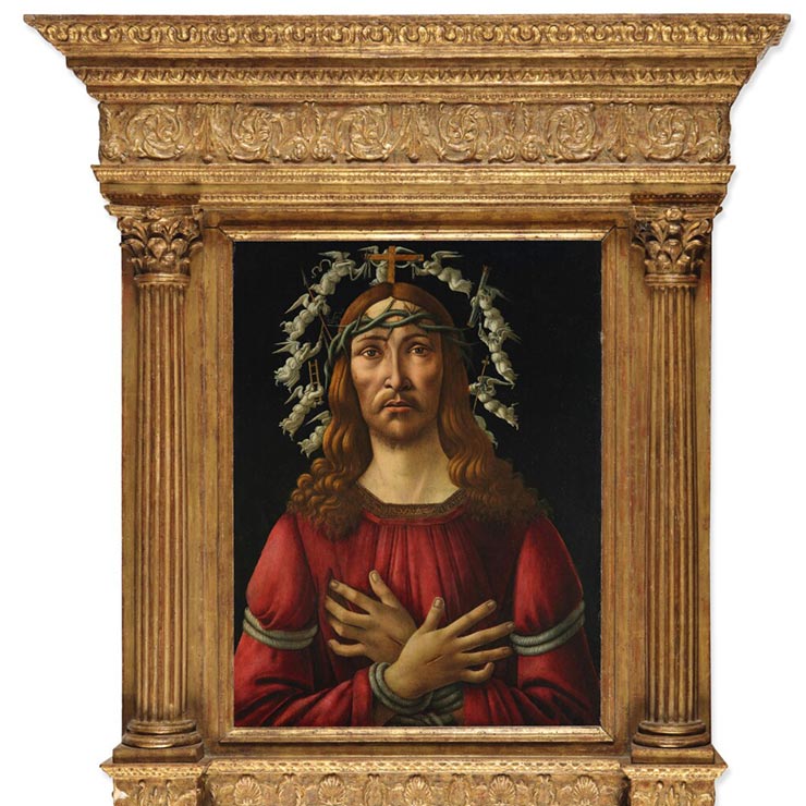 This extraordinary painting, he continues, is a prime example of what makes the artist so captivating: a “bold visual style coupled with a singularly human approach to portraiture. In taking what is a rather difficult and somber subject matter of Christ following his persecution, Botticelli creates a deeply complex and moving portrait that is truly timeless.”