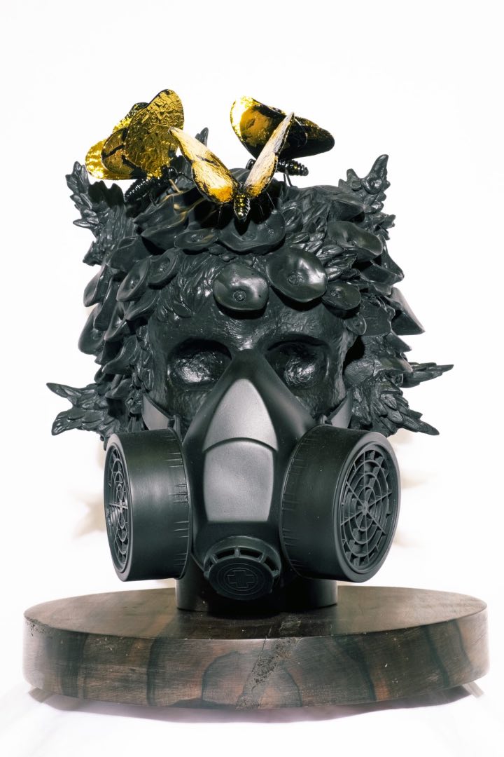The concepts of rebirth and hope are explored in “Past Expressing”, wherein Fundacion Sansó, in collaboration with Art Lounge Manila, commissioned artist Pepe Mendoza to create and cast resin sculptures of Sansó’s skulls with flowers. These skulls were then given to 17 noted Filipino guest artists to interpret the concept with their own choice of medium and techniques.