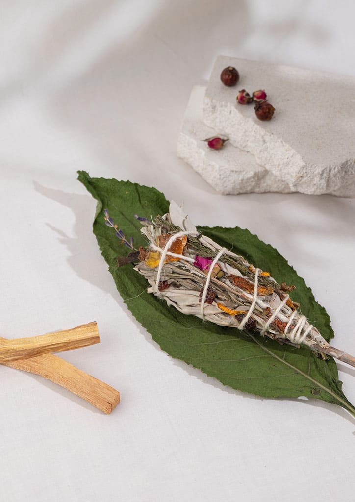 These local ingredients are mixed with white sage, cedar, palo santo, lavender flowers, blue sage, and wild purple sage. Medicinal smokes like burning sage and other herbs are a powerful ritual that indigenous communities have been using to clear negative energy for thousands of years.