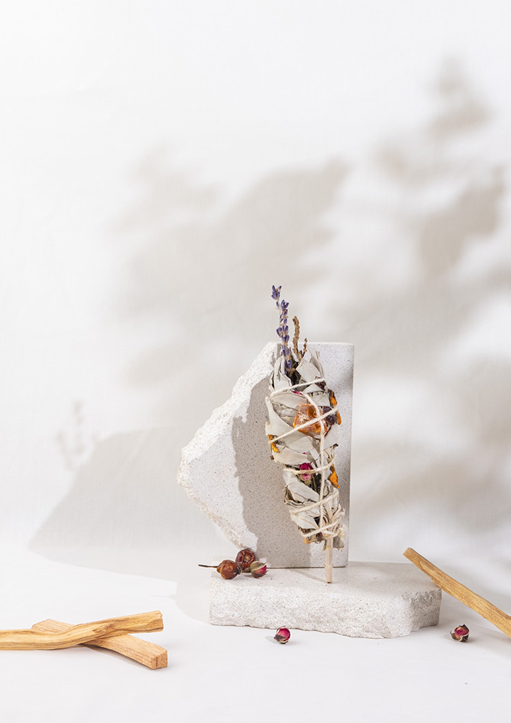 These local ingredients are mixed with white sage, cedar, palo santo, lavender flowers, blue sage, and wild purple sage. Medicinal smokes like burning sage and other herbs are a powerful ritual that indigenous communities have been using to clear negative energy for thousands of years.