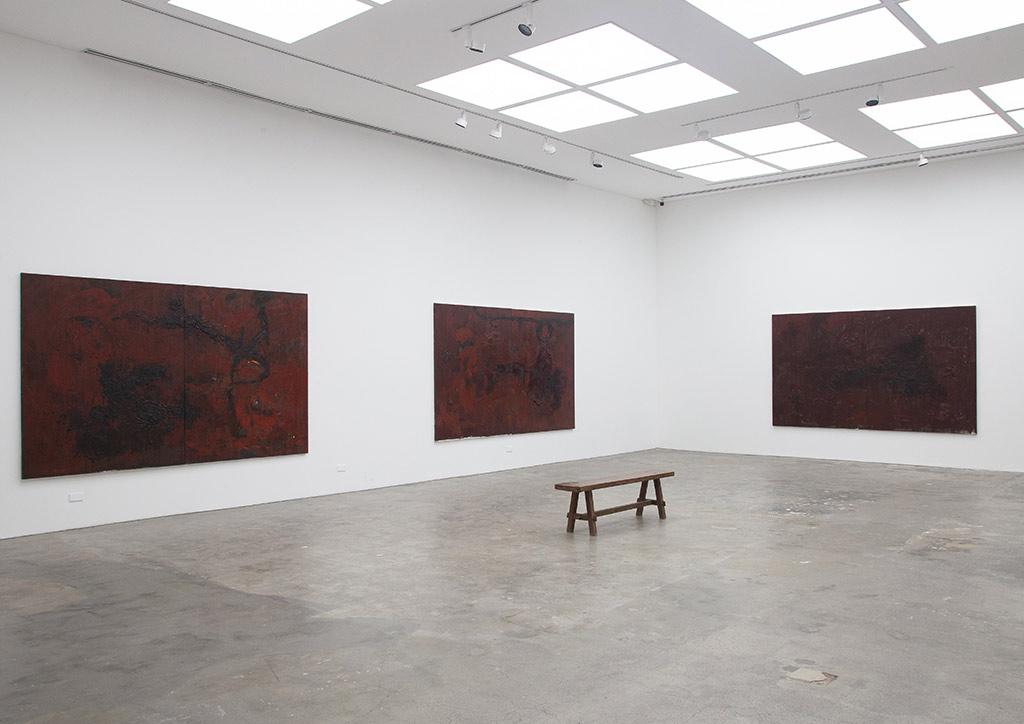 Referred to as the red paintings, the huge monochromatic diptychs signal a new phase in the artist’s oeuvre.