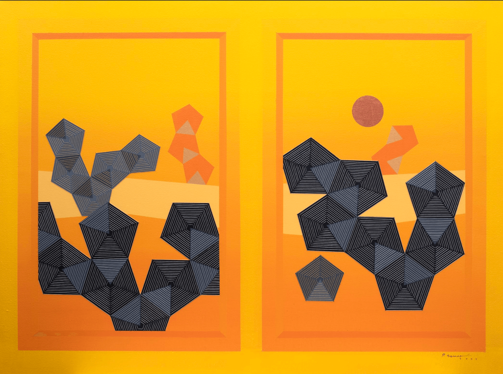 From taking a career detour, he is now taking a different path for his artistic pursuit. From landscapes and cityscapes, Patrick is now taking a more abstract approach in his latest collection entitled Threads of Time. In his latest collection, he explores abstract interpretations of landscapes. Moreover, geometric imitations of the desert and ruins are formed through his masterful manipulation of threads combined with the strategic use of colors. “I decided to do a different subject to explore other shapes and forms of representation,” Patrick states.