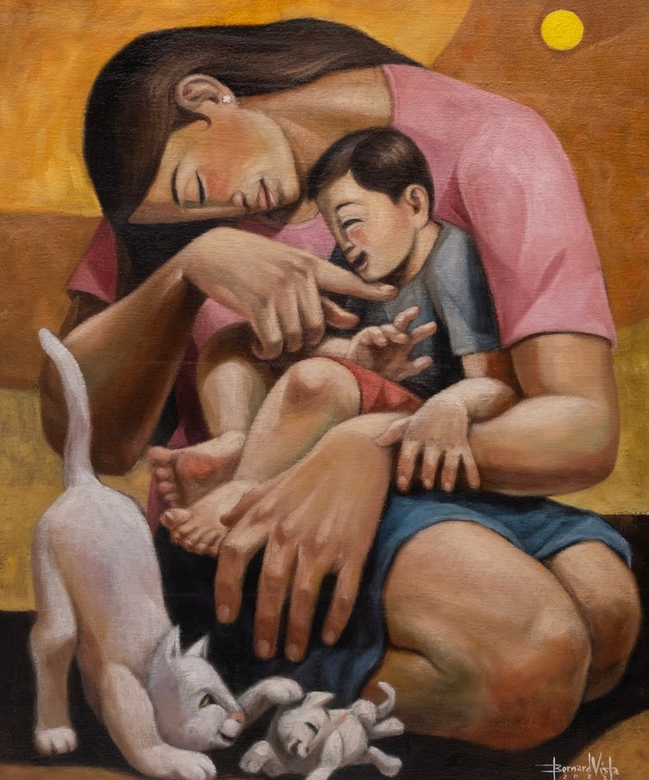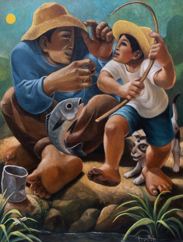 Born in 1968, Vista has gained widespread recognition for his warm and stylistic paintings that capture the beauty of provincial life in the Philippines, showcasing quiet, quotidian moments and magnifying them to remind viewers that there’s joy to be found in simplicity. A product of the fine arts program at the University of Santo Tomas, Vista was a member of the famous Saturday Group of artists, helmed by H.R. Ocampo—who chose him as a sponsored scholar of the group. Vista then enjoyed a long and fruitful career as a children’s book illustrator and art director of a publishing company before he went into painting full time, with successful shows at a number of prestigious galleries.
