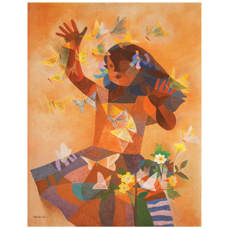 Romeo Tabuena (1921 – 2015), Niña Con Mariposas, signed (lower left) pastel on paper