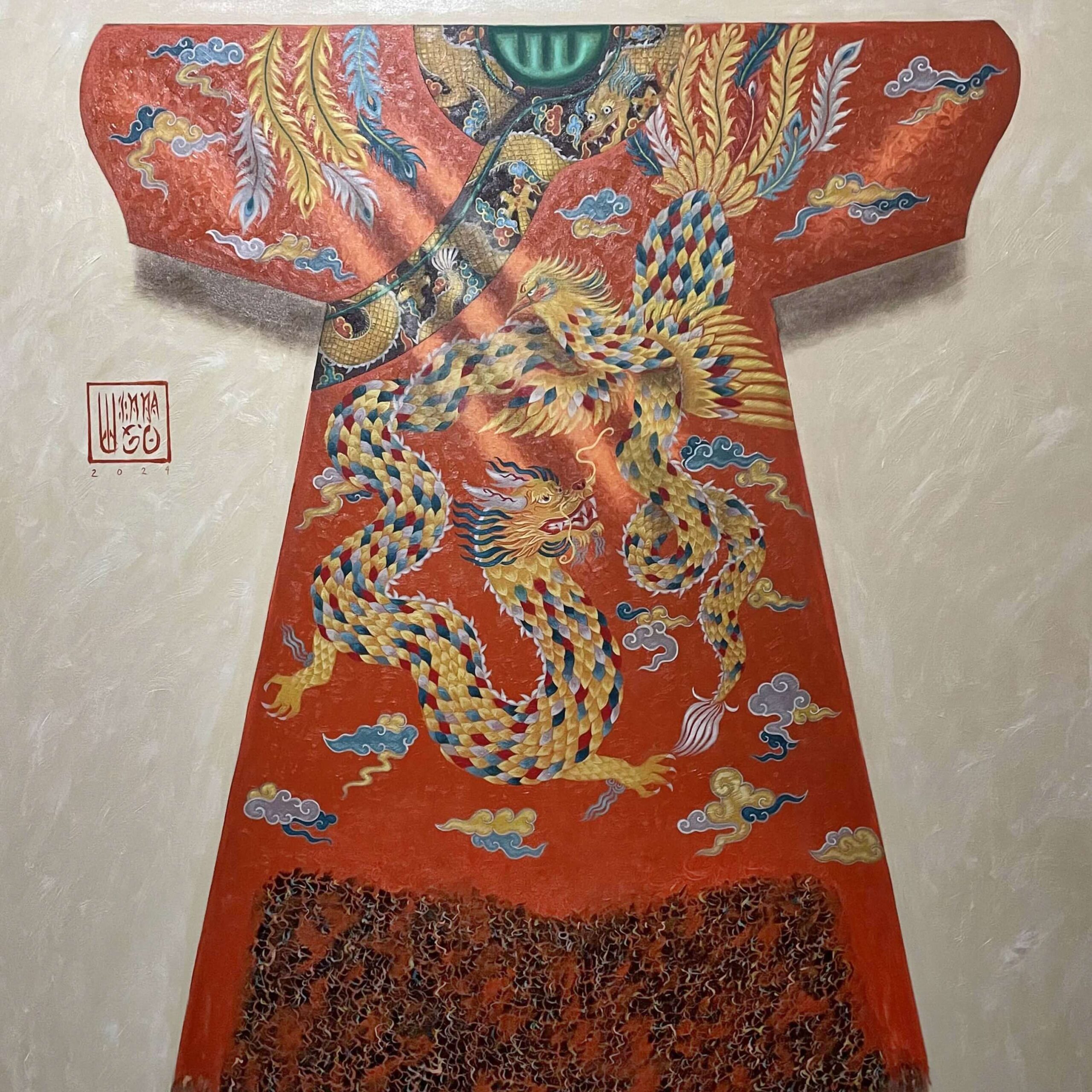 In her third solo exhibition, Winna Go explores her Chinese heritage and the nuances of the diasporic experience through her intricate, realistic paintings of traditional robes and textiles.