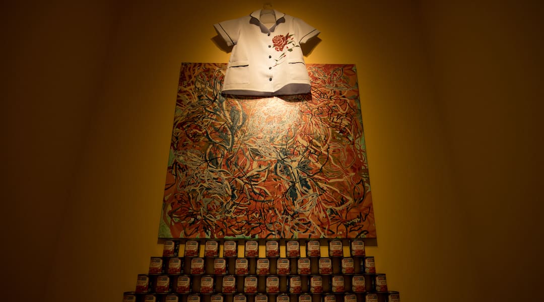 FurOnFire Enzo Razon’s installation payed tribute to his longtime nanny, Rose. Through his work, he depicts his fond childhood experiences with her by painting flowers on a nanny’s uniform and on canvas. Below it, he has created an alter made out of 350 cans of corned beef. The impressive line-up of artists also includes Jappy Agoncillo, Jose Alvarez, Lakantula, Jaqueline Pisano, Martin San Diego, and Alex Westfall.