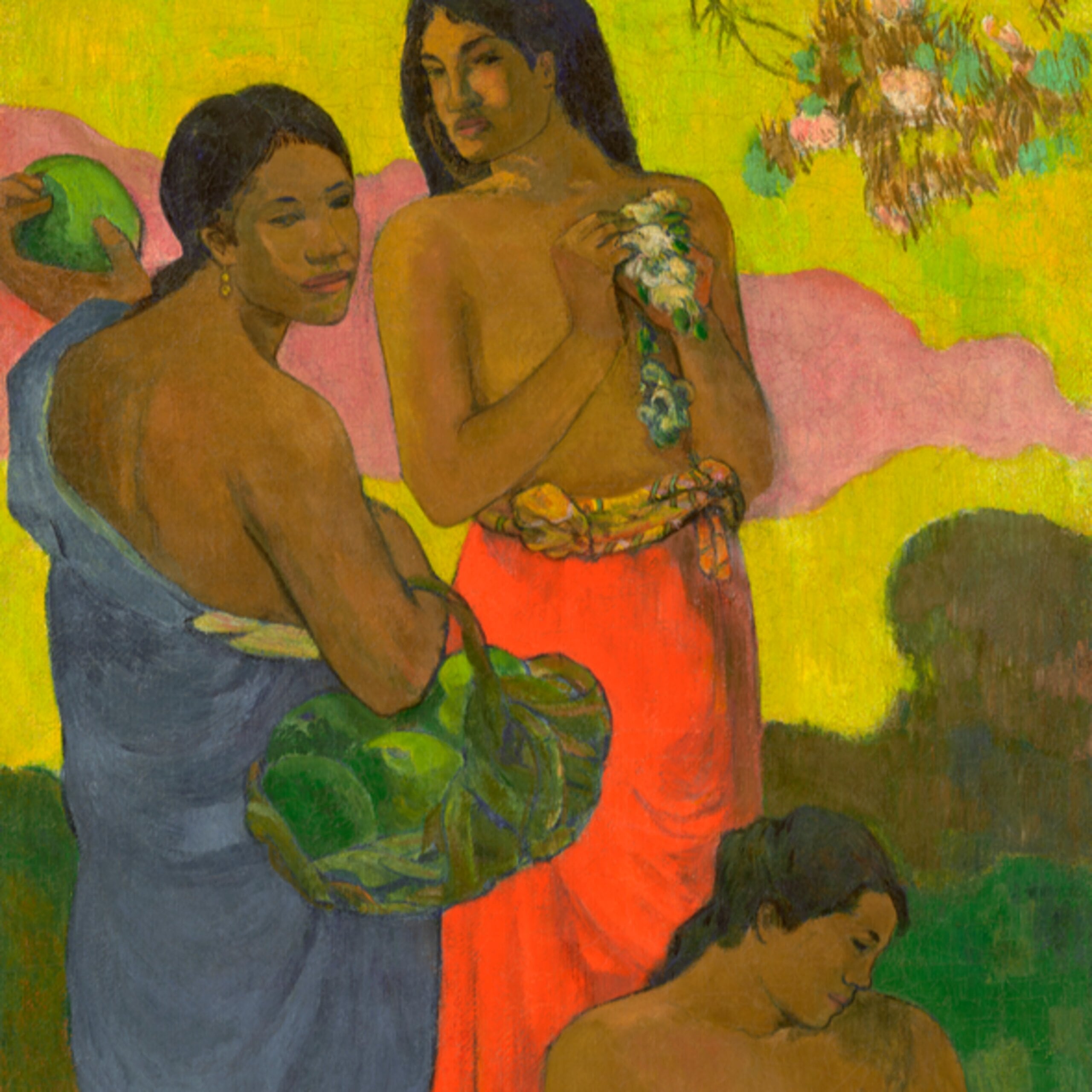The painting is representative of Gauguin’s love for all things Tahitian. Christie’s described the piece as one that “offers a timeless vision of femininity and motherhood, a verdant ode to fertility.” Three Tahitian women are the subjects of the work, with one shown breastfeeding a baby.