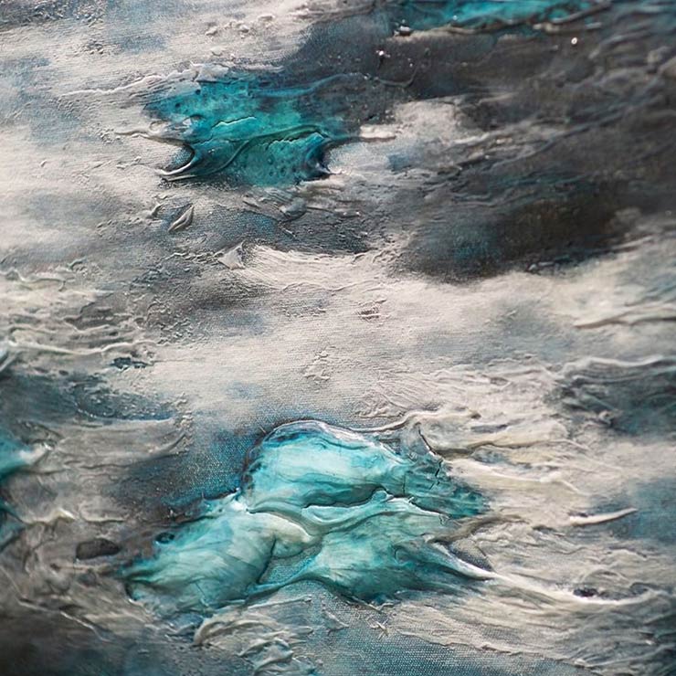 Citing Elaine Navas and Mark Rothko as recent influences, she creates powerful, highly textured works of art that emphasize movement and flow.