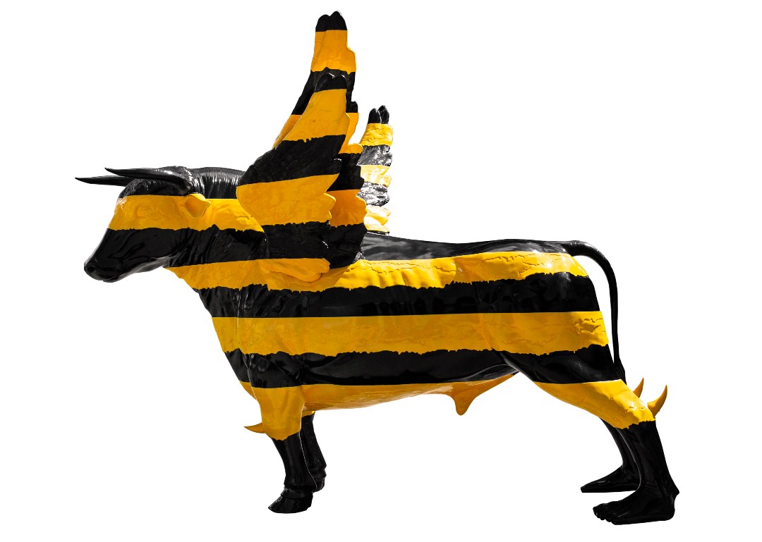 For the show, the artist explored the meaning of, and ideas associated with, his thematic choice, creating beasts of every kind to pull apart long-held perceptions, or blend mediums, motifs, and beliefs altogether to result in a perplexing whole. “Territorial Crossing,” for example, was inspired by Christian iconography where St. Luke, the evangelist, is symbolized as a bull – a sacrificial animal. Ventura’s hybrid creature, though, seems ready to resist attempts at subjugation, the bold yellow on black stripes alerting the viewer to the aggressive stance as signified by forward-leaning posture and the extra horns sticking from its appendages.