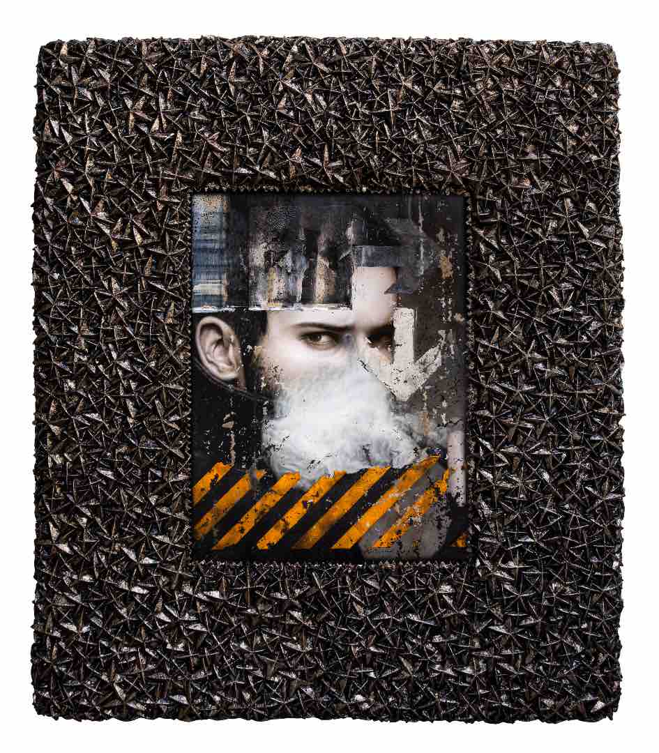 “Beastmaster (4)” is a reincarnation of the mythological sphinx, as guardian and master of its tire track-marked urban domain. The artist allows for relief with sculptures like “Beastmaster (A).” A monkey (inspired by the Bored Ape NFTs) is dressed as an explorer as it surveys the landscape. It assumes the pose associated with safari hunters who assert dominance by resting a foot on their so-called trophies. In a comic twist, the usual animal trophy is replaced with a banana peel, with the monkey’s traditional enemy depicted as a meek sidekick waiting by its feet. The monkey provokes with a wide grin, to remind the viewer of the humor that also resides in Ventura’s phantasmagorical realm.