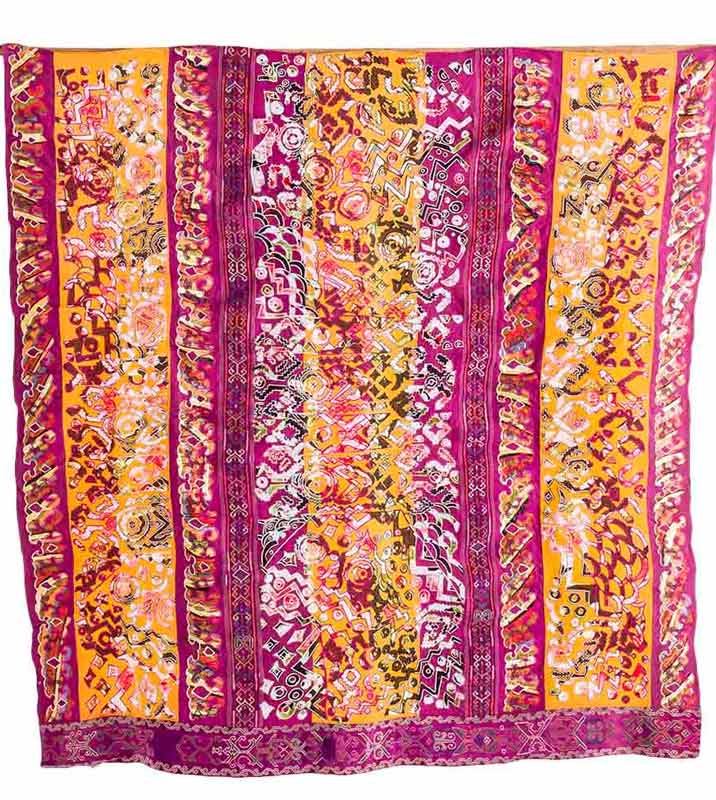 Over the last four years she designed tapestries that combined printed cloth, embroidered nipis [a generic term referring to fabrics made from fine fibers of abaca, pineapple, maguey, raw silk or a combination of these in the nineteenth century, as well as hand-dyed materials – Sandra Castro].