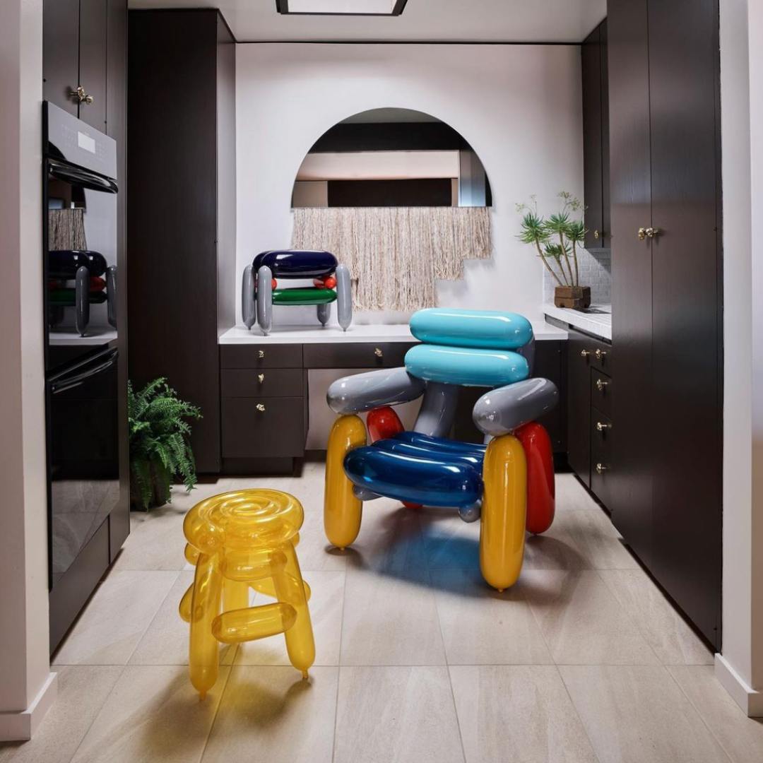 Last year Yang had the opportunity to reinterpret the iconic Dior medallion chair for Dior Maison. His unique work of art was unveiled at the Salone Del Mobile 2021, applying his signature whimsical Blowing Series technique by molding various balloons using epoxy resin to transform the structure of the chair.