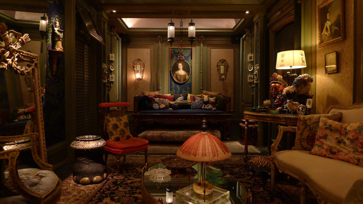 The interiors of the authors’ home feature an opium bed, Turkish lamps, and Persian carpets mixed happily with French Rococo furniture.