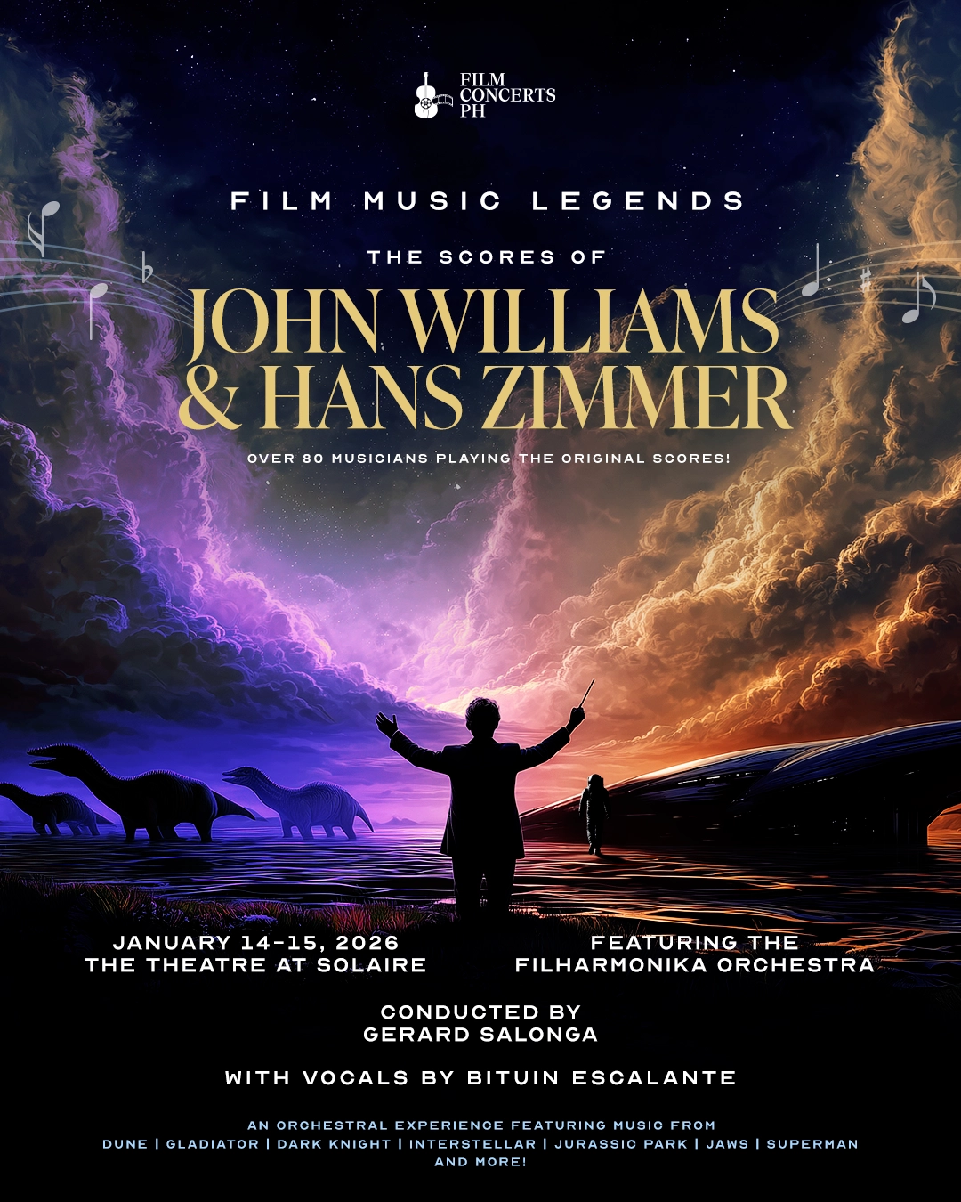 It was only a matter of time before Film Concerts PH—which has been redefining live entertainment in the Philippines since 2024 through its innovative symphonic experiences—paid tribute to these two titans of cinema. This marks the group’s very first purely orchestral production, which will be performed by the Filharmonika Orchestra and conducted by Gerard Salonga. The shows will take place on January 14 and 15, 2026, at The Theatre at Solaire.