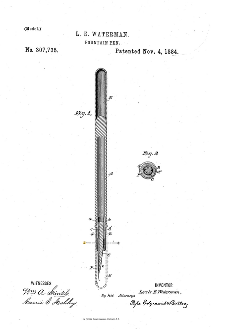 However, most sources will say that it was traveling salesman Lewis Waterman—founder of the namesake pen brand Waterman—who designed and patented the first “modern” fountain pen in 1884, which successfully used capillary action to function.