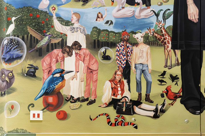 “I thought it was interesting to accompany people in these first six years of adventure, inviting them to cross the imaginary, the narrative, the unexpected, the glitter,” says Alessandro Michele, Gucci creative director and the curator of the exhibition. “So, I created a playground of emotions that are the same as in the campaigns, because they are the most explicit journey into my imagery.”