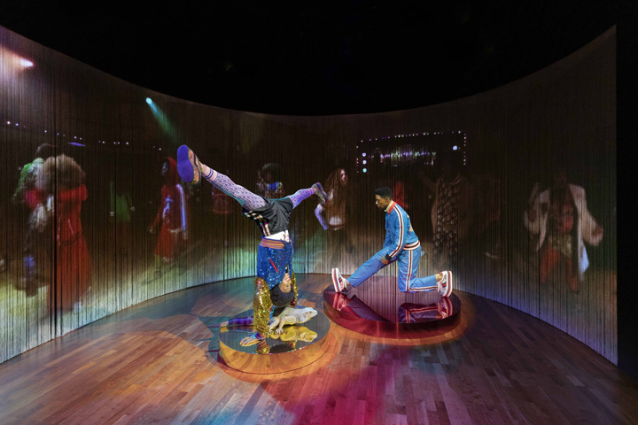 In one room, a circular projection creates the immersive sensation of being out ‘on the floor’ with the exuberant dancers of Pre-Fall 2017, with its pioneering casting of an all-black ensemble, in what Michele described as a “homage to the elegance of black culture,” by putting it in the foreground, this campaign responded to the need for a better representation of the Black community in the fashion industry.