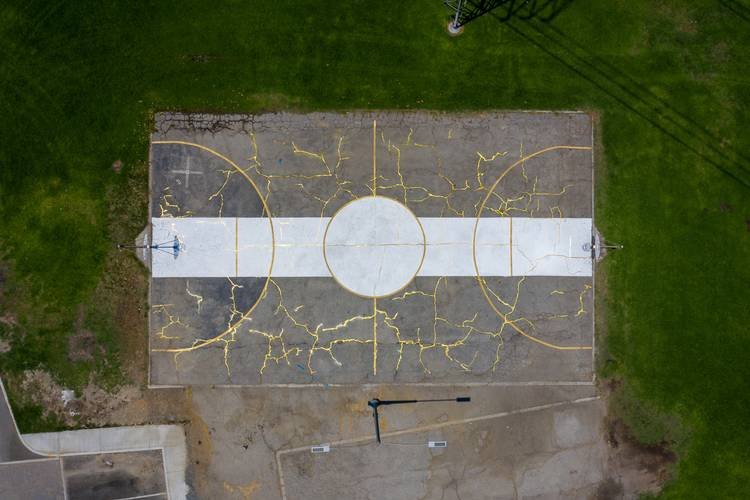 In 2020, Solomon’s “Literally Balling” project included a crystal basketball sculpture worth $1,499 (he later made an NFT iteration of the art piece). And in the same year, to celebrate the NBA season resuming after a pandemic hiatus, Solomon repaired a Los Angeles basketball court by filling cracks with gold-dusted resin.