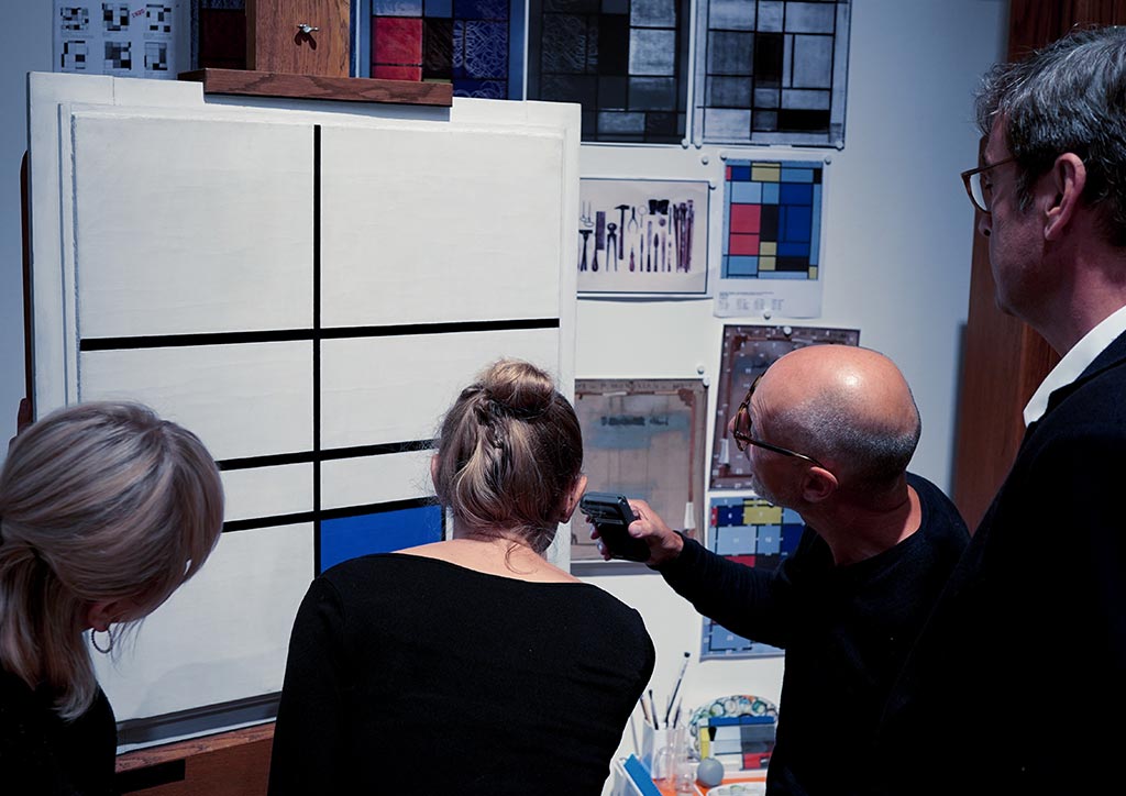 In-depth examination, scientific study, assessment of condition and predicting the impact of time and change on these four Mondrian paintings is achieved through technology-based methods such as X-radiography, infrared reflectography, material analyses and high magnification.