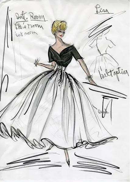 Yet her journey to becoming Hollywood’s most celebrated costume designer was far from glamorous. In the early 1920s, she began a humble career at Paramount as a costume sketcher, but her creativity and talent quickly shone through as she designed for films of the silent era. By 1938, she secured her place as one of cinema’s leading talents and was appointed Chief Costume Designer at Paramount, becoming the first woman in Hollywood to oversee a major studio’s costume department. She held the position until 1967, when she moved to Universal Pictures (likely to continue her collaboration with Alfred Hitchcock, who had transferred there in 1960).