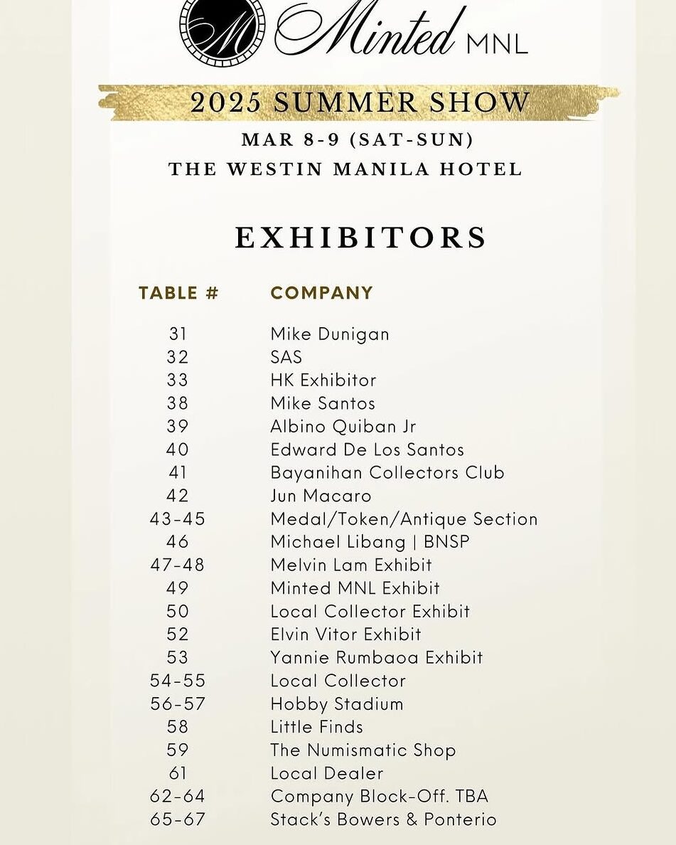 Minted MNL is a leading numismatic organization in the Philippines. Since its establishment in 2016, it has been dedicated to fostering a thriving collecting community through a variety of events, educational initiatives, and premier auctions. Its upcoming Summer Show is a part of this mission, set to run from March 8 to 9, 2025 at The Westin Manila Hotel.