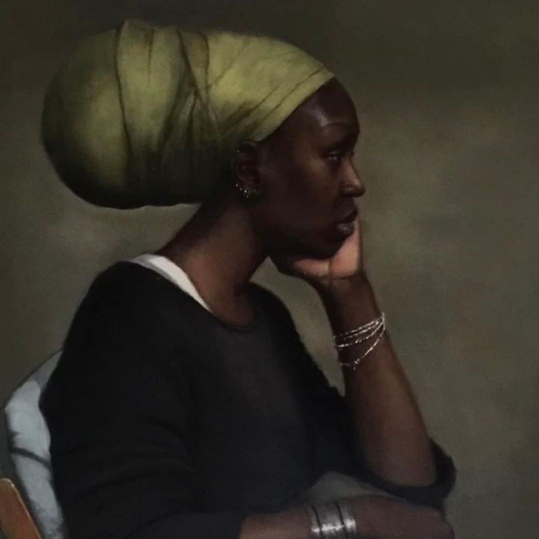 According to the portraitist herself, the artwork has colors that appeal to her with an image that is strong, yet so simple.