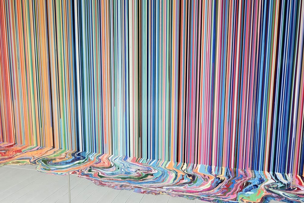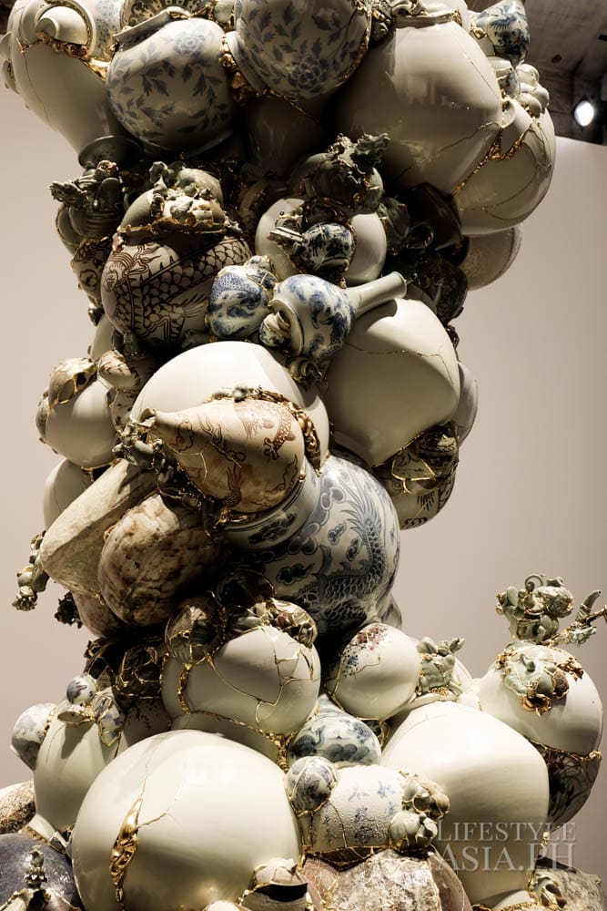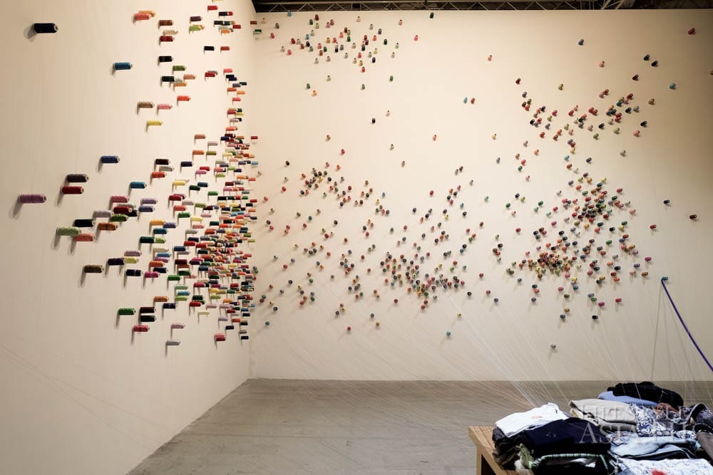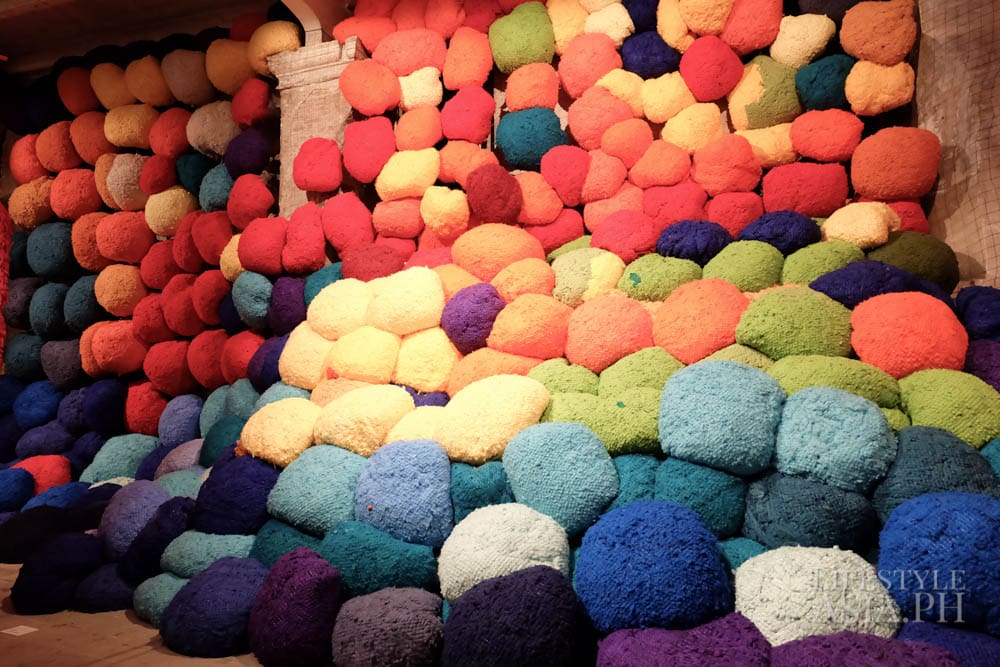 Stitching was also the medium for interacting with Lee Mingwei’s The Mending Project. I had previously come across the participatory installations of this Taiwanese American artist a few years ago in Japan and had become a fan. He replicated the interactive conceptual work using threads and sewing to provoke reflection and sharing among strangers. Visitors were invited to have their clothing articles mended at the site. Strands of thread used were extended to spools on the wall, creating airy rainbows across the walls.