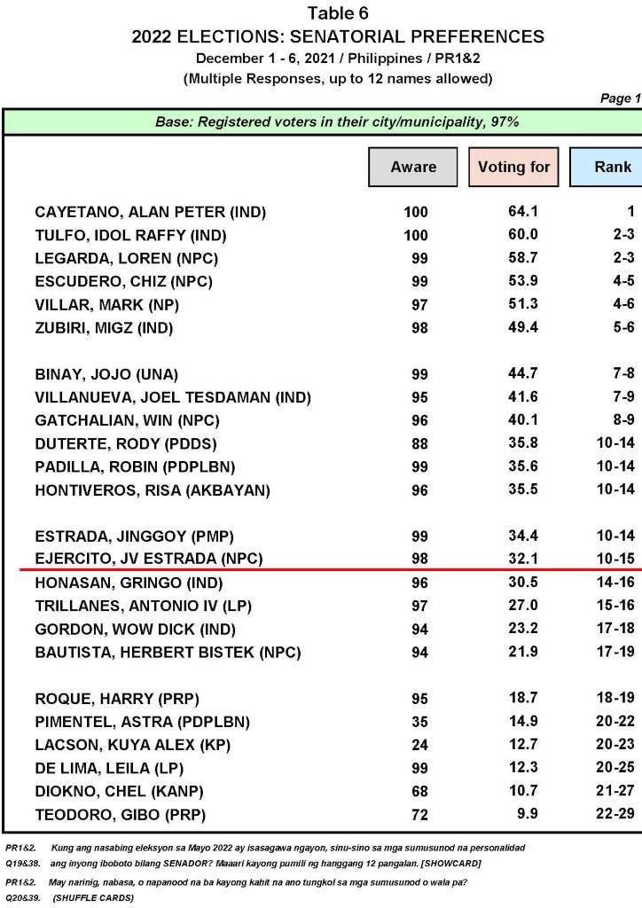 According to Pulse Asia’s December 2021 Nationwide Survey on the May 2022 Elections, nine of the 14 possible winners statistically in the “magic 12” are either current or former members of Congress.